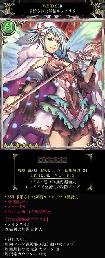 報酬SSRは、風属性【ルフェリラ】 ※スピードS