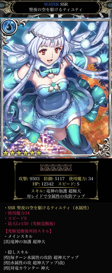 報酬SSRは、水属性【ティユティ】 ※スピードS
