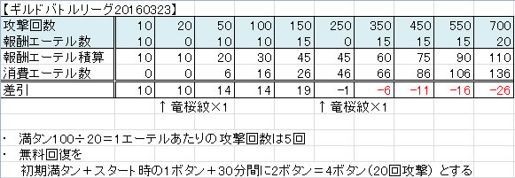 攻撃回数報酬は、開催期間が長い版(エーテル数が多い)になっています。