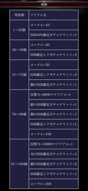 クリアすると攻撃+10000マテリアルが手に入ります。