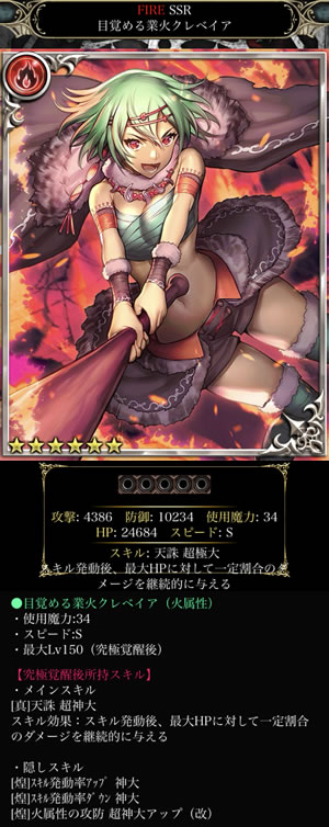 報酬SSRは、火属性【エリャール】 ※スピードS