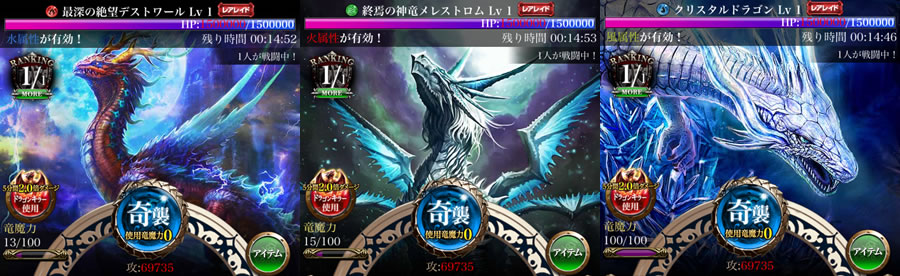 ・ イベントSSR竜(Lv50で[覚醒]ブラスティスが出る竜 Lv、覚醒、未覚醒 問わず)の